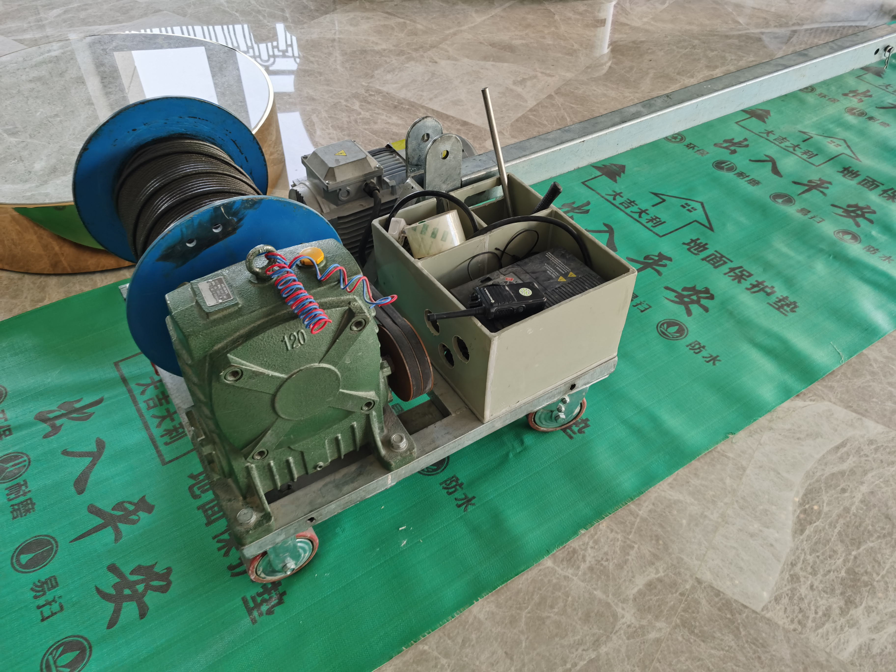 12、卷揚機卷筒上的鋼絲繩,應依次靠近,排列整齊,留在卷筒上的鋼絲繩不得少于3圈,卷揚機卷繞鋼絲繩時,不得用手引導,嚴禁人員在繩旁停留或跨越正在工作的鋼絲繩。